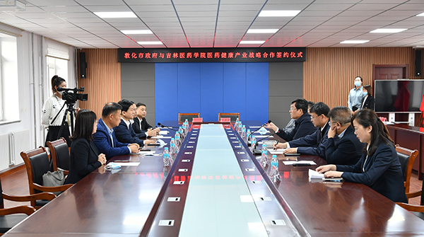 9月23日,吉林医药学院党委书记李才带队赴敦化市开展政校企合作。敦化市委副书记、市长唐振生出席活动。